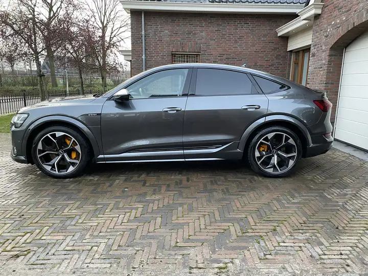 Prachtige, zeer exclusieve Audi Etron S met maar Liefst 503 PK. , met special kleurDaytona Grijs, Pano dak, comfort Stoelen, B&O en werkelijk in onberispelijke nieuwstaat.