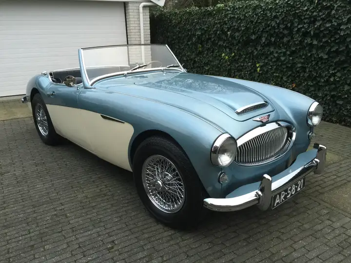 Een prachtige Austin Healey 3000 MK II uit 1962. Een icoon onder de klassieke Britse roadsters, met zijn krachtige 3 liter zescilinder, fraaie lijnen en onvergetelijke rijbeleving.
