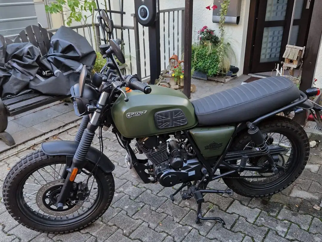 Hallo, Ich trenne mich von meiner Brixton Felsberg 125 ABS in Cargo Green aufgrund eines Aufstiegs auf A2. Dazu biete ich an: - Shin Yo Topcase mit Sozius-Rückenpolster - Abdeckplane für draußen - Handbuch