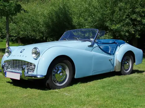 À vendre, superbe Triumph TR3 A de 1960 dans sa teinte d’origine Powder Blue, une couleur rare et recherchée.