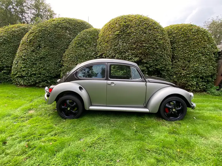 Deze Kever heeft een zeer unieke kleurstelling en is erg netjes gespoten met een Toyota Matt Silver en een Porsche Bruine top kleur ( Duo Tone )